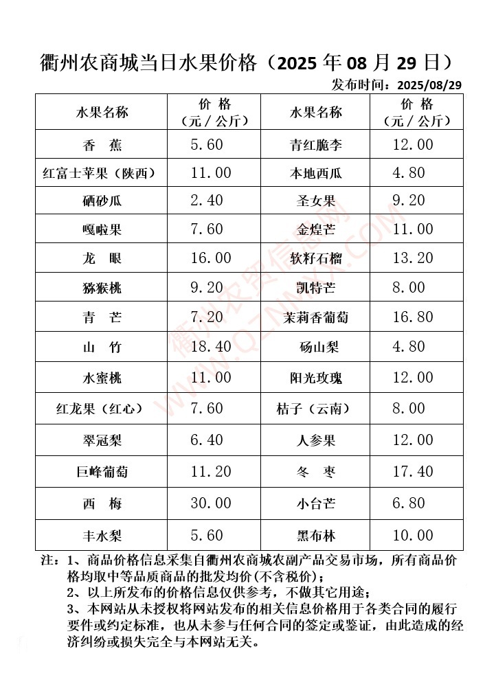 衢州农商城当日水果价格