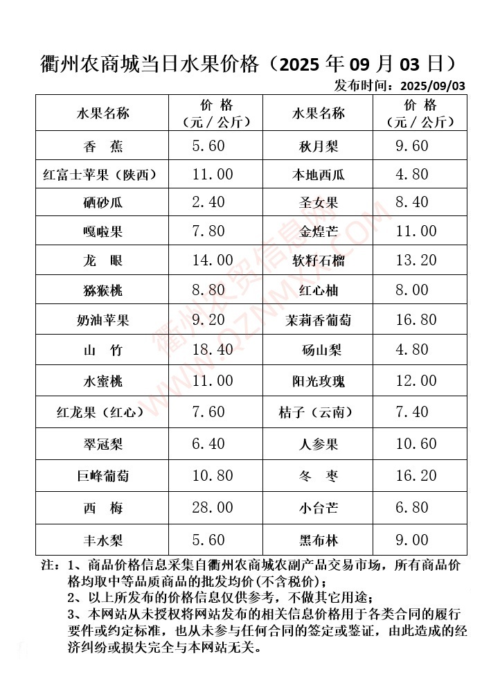 衢州农商城当日水果价格