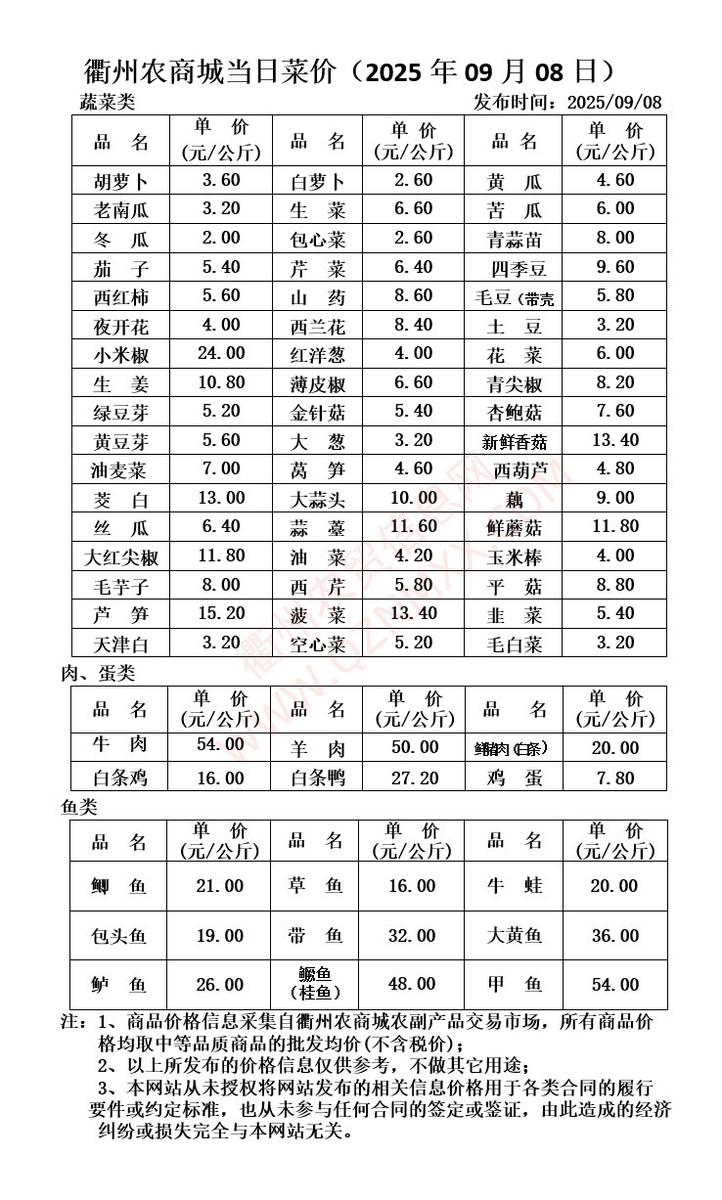 衢州今日菜价