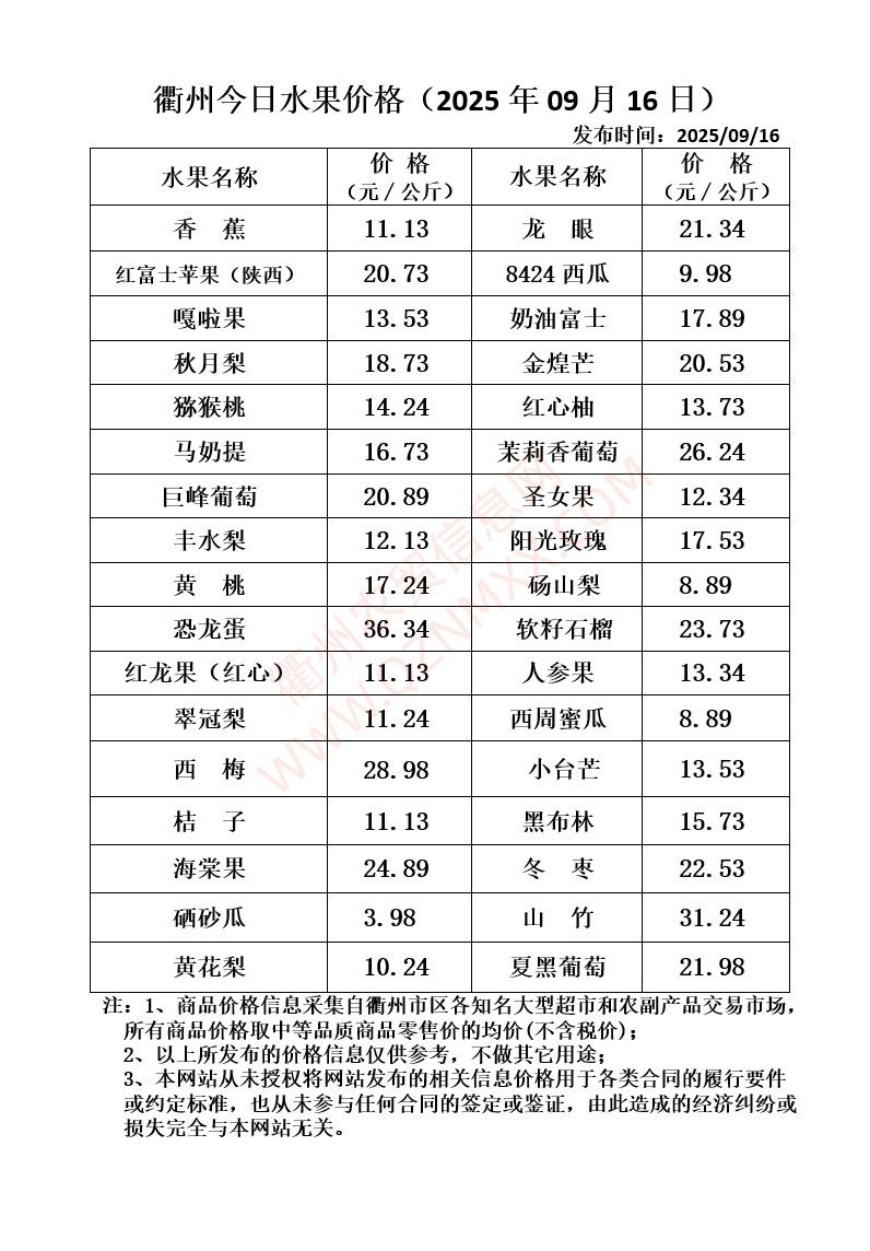 衢州今日水果价格