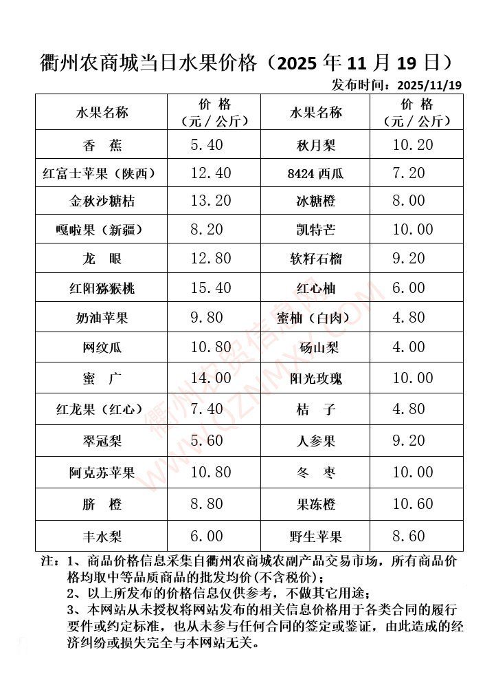 衢州农商城当日水果价格