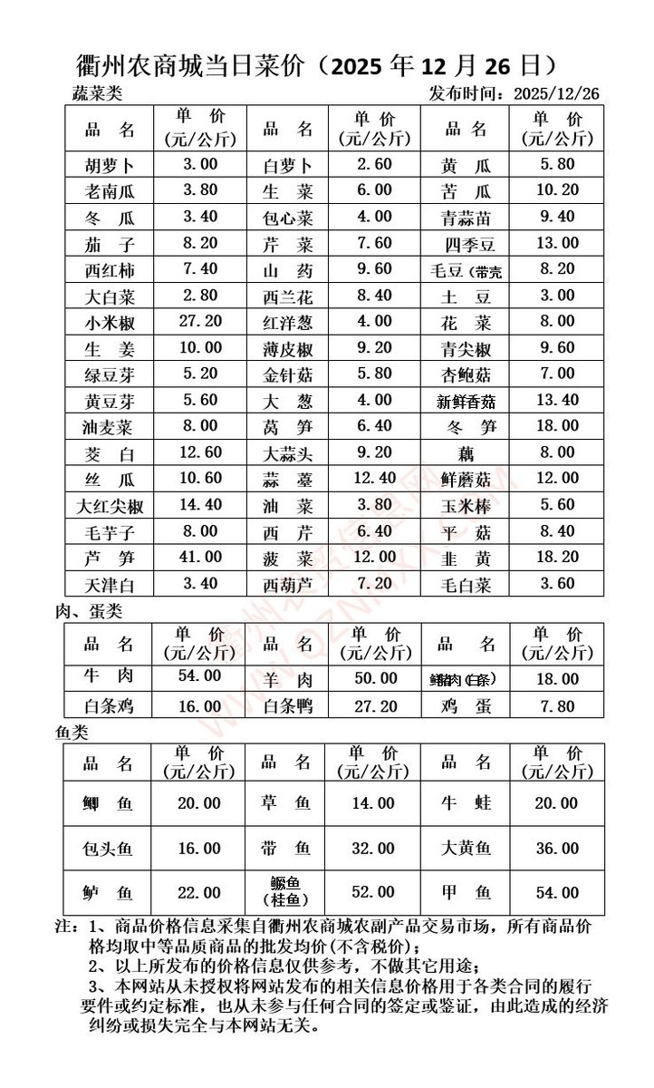 衢州农商城当日菜价