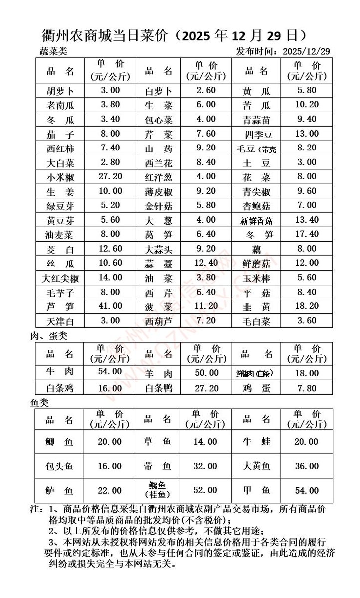衢州农商城当日菜价