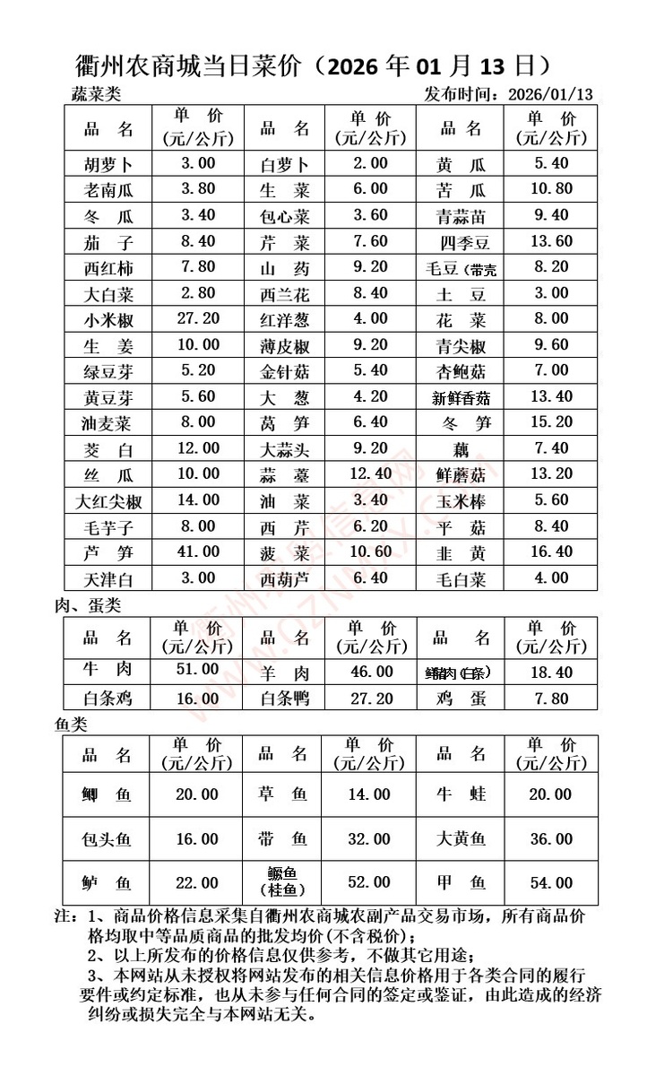 衢州农商城当日菜价