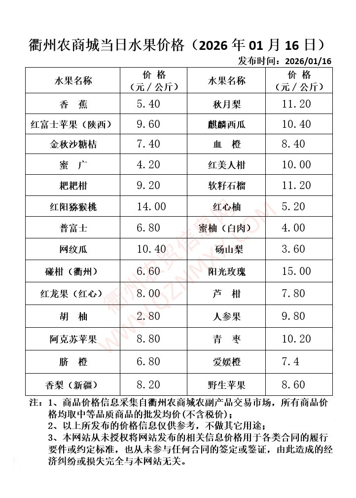 衢州农商城当日水果价格
