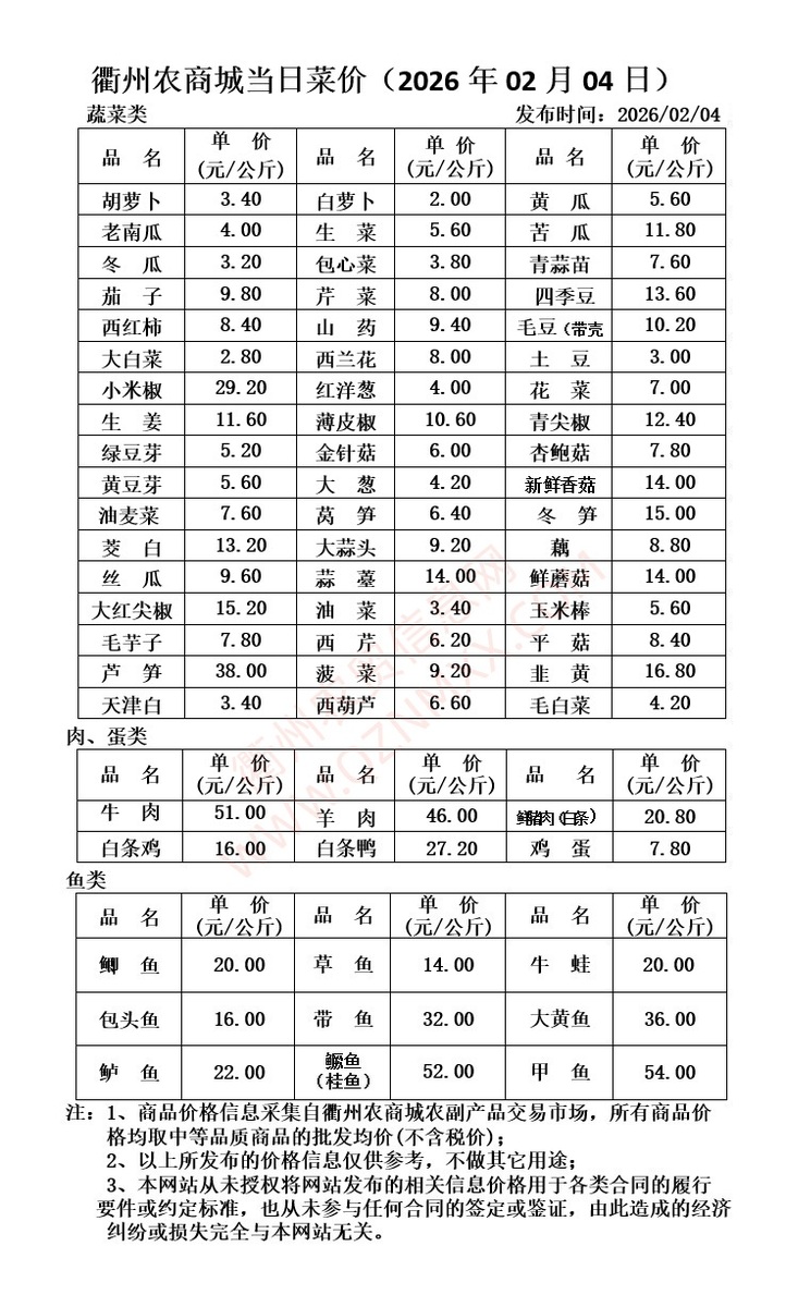 衢州今日菜价