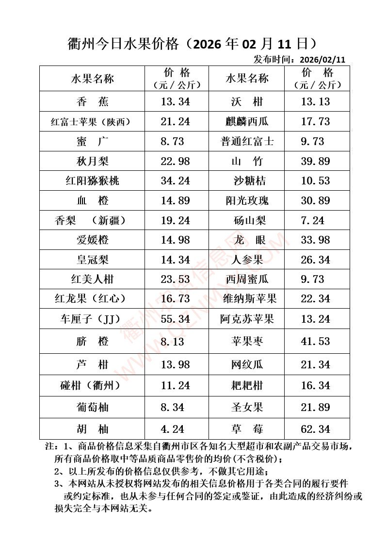 衢州今日水果价格