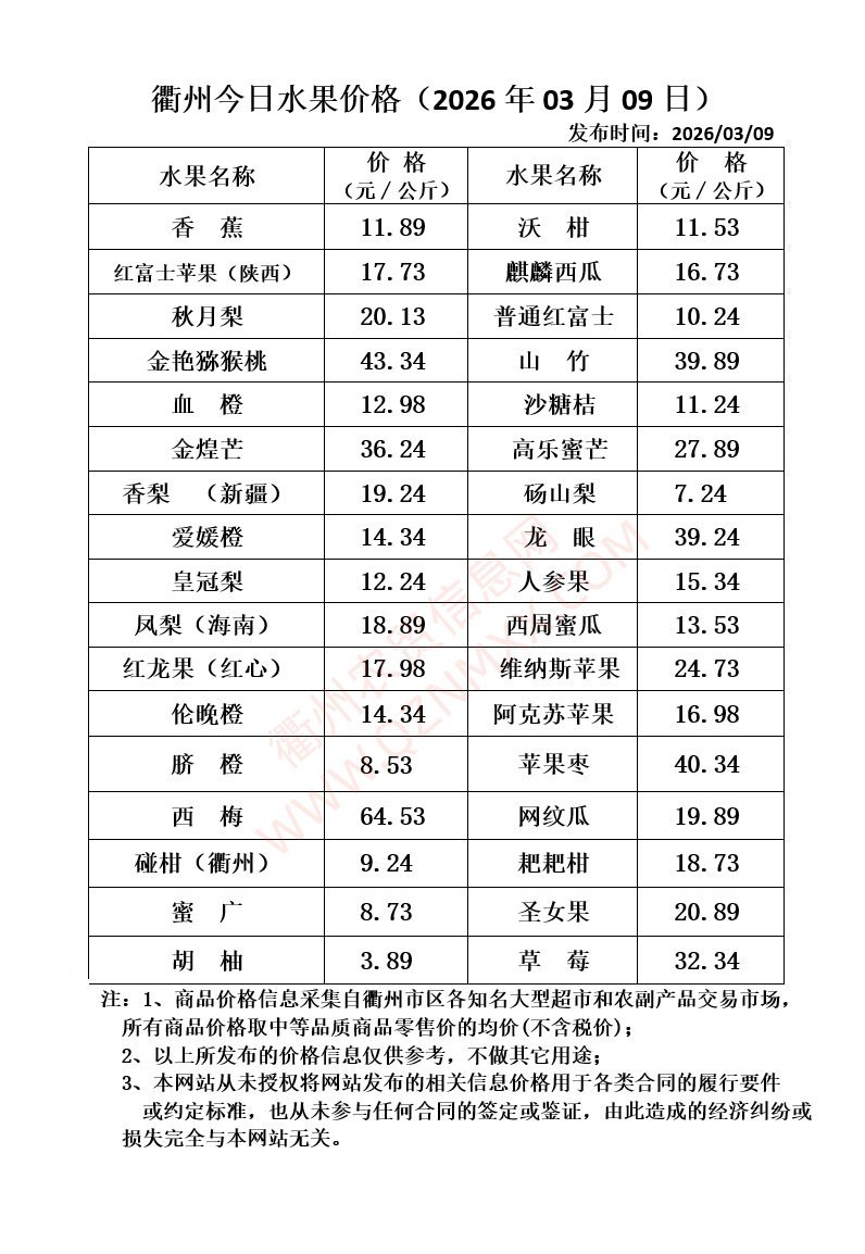 衢州今日水果价格