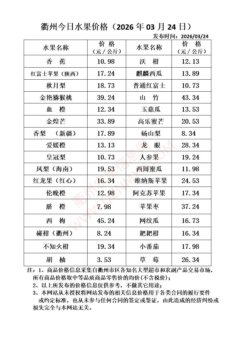 衢州今日水果价格