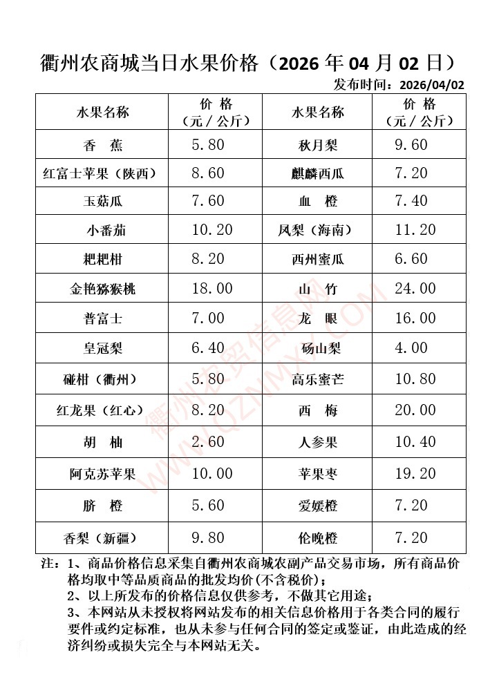 衢州农商城当日水果价格