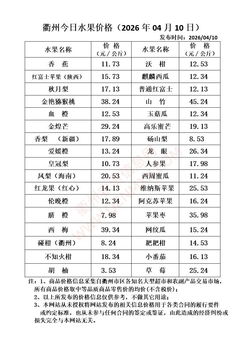 衢州今日水果价格